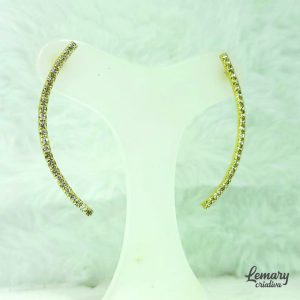 Brinco dourado curvo com strass