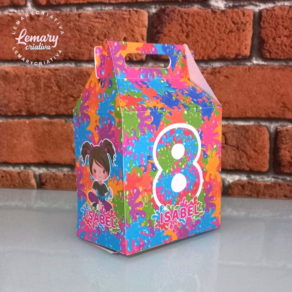 > Tamanho aproximado da caixinha montada: 15cm (altura, contando com a alça) x 10,5cm x 6cm