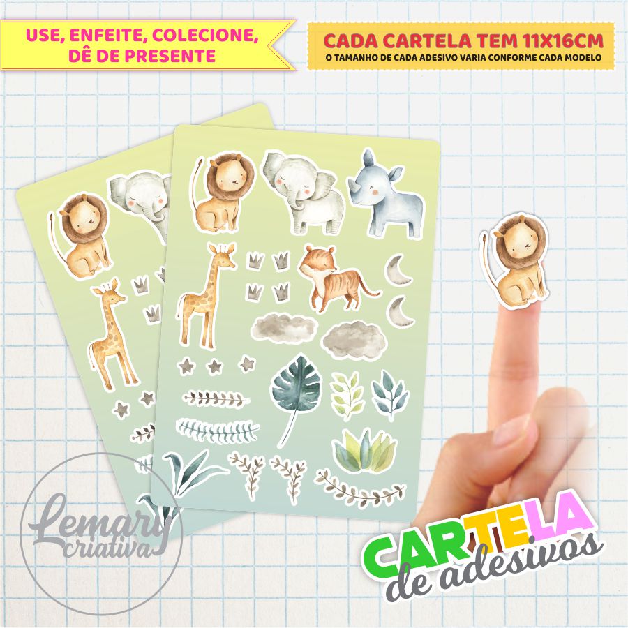 Cartelas de Adesivos Papelaria Safari Mod.0001 (2 cartelas)