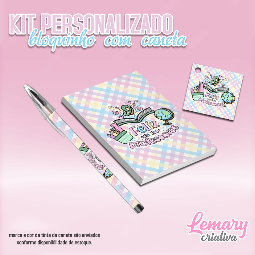 Kit Bloquinho Caneta e Tag Dia dos Professores Mod.002 (10 Kits)