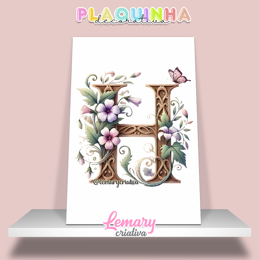 Plaquinha Decorativa MDF 19x28cm Letra H MOD00001